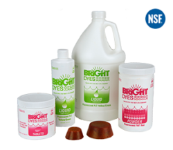 Bright Dyes has been the leader in the Water Tracer Dye market for more than 60 years. We manufacture a complete line of tracer dye products (fluorescent and non-fluorescent), along with products like our Toilet Leak Detective Kits that help customers conserve their community water supplies.