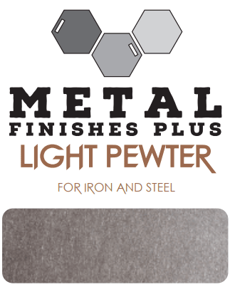 Light Pewter will darken steel, steel alloys, “pot” metal, brass and many other metals to various shades of pewter gray. Light Pewter is primarily used to give metal parts an aged, antique appearance. This product may be used as a spray, but the best method of application is immersion. The longer a part is left in the solution, the darker it will become. Most users opt to quick dry the darkened parts and then burnish them before sealing. This process will brighten the high spots and leave the recesses darkened. The result is a natural looking aged, pewter-like finish. If the darkened part is allowed to air dry and oxidize, differing shades of green rust will form. This can produce interesting and attractive finishes, so experimentation is worthwhile. Light Pewter will also darken parts plated with our Copper Plate solution. Different effects are produced on different types of metal as not all metals will react in the same fashion.